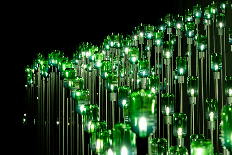 <Luminous Green>은 아모레퍼시픽재단의 '버려지는 것들의 아름다움' 프로젝트의 일환으로 제작했다. 해당 작품은 아모레퍼시픽 그룹의 '아모레리사이클' 캠페인을 통해 수거한 화장품 공병을 조명 모듈로 재디자인해, 인공적이면서도 유기적인 풍경을 구현한다. 특히 작은 초록색 화장품 공병을 빛을 머금는 조명갓 등 주요 소재로 활용해 지속가능성과 예술적 가치를 동시에 담았다.