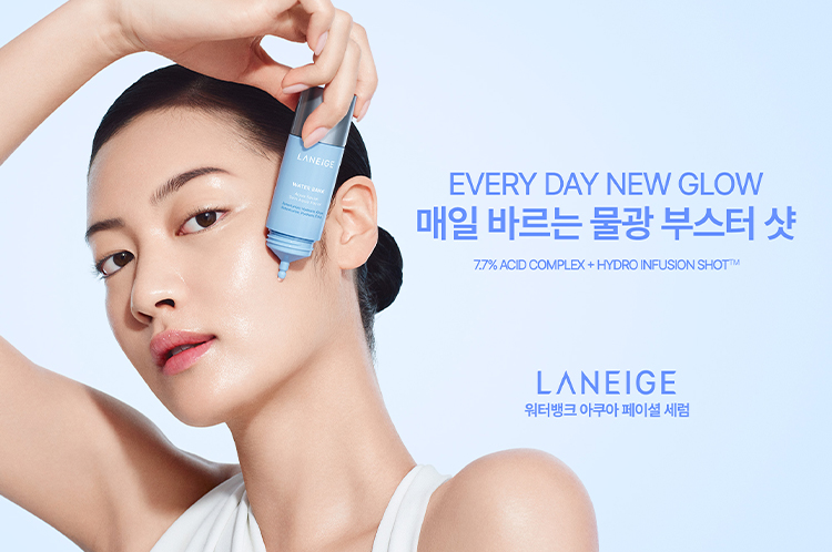 '라네즈 워터뱅크 아쿠아 페이셜 세럼'은 각질 및 피부결 관리에 효과적인 7.7% 애씨드 콤플렉스(PHA, AHA, BHA)를 담고 있으며, 더불어 물광 특수 관리에 활용하는 가교 히알루론산, PGA, PDRN, 히알루로닉 세라마이드 등으로 구성된 하이드로 인퓨전 샷TM(Hydro Infusion ShotTM)을 이상적인 비율로 배합해, 촉촉하게 빛나는 유리알 광채 피부를 완성해 준다.