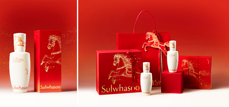 이번 한정판은 어둠을 뚫고 하늘을 달리는 백마의 역동적인 모습을 현대적으로 재해석한 것이 특징이다. 불꽃처럼 흩날리는 갈기와 꼬리, 다리 주변을 감싸는 신비로운 기운은 끊임없는 도전과 모험을 향한 힘찬 에너지를 상징한다. 특히 말 머리 위의 푸른 별은 희망을 의미하며, 안장의 매화 문양은 설화수 브랜드 심볼과 연결된다. 주변을 수놓은 별빛과 불꽃 요소는 새해를 맞아 역동적으로 달려 나가는 진취적인 모습을 응원하는 메시지를 담았다.