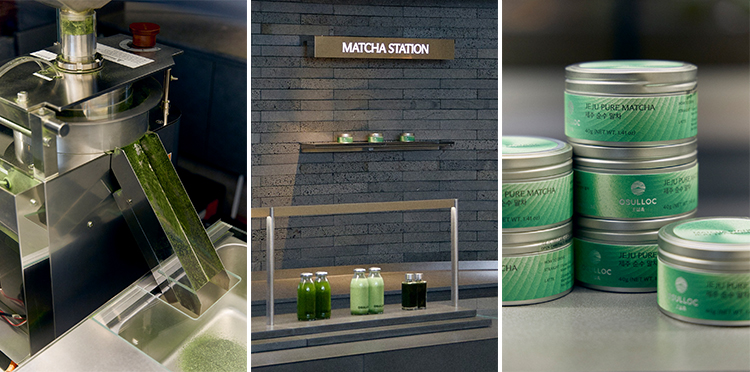 말차 스테이션은 차광 방식으로 재배한 제주 찻잎을 즉석에서 분쇄한 신선한 말차를 즐길 수 있는 고객 체험형 공간이다. 매장 내 비치된 말차 전용 전동 차선을 이용해 누구나 블렌딩과 시음을 할 수 있다.